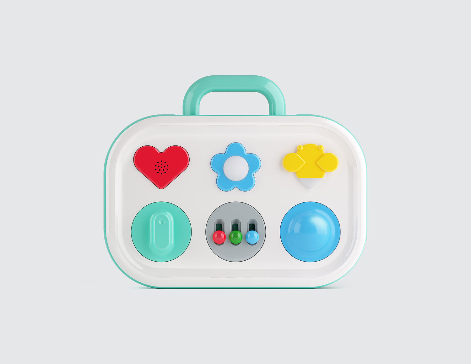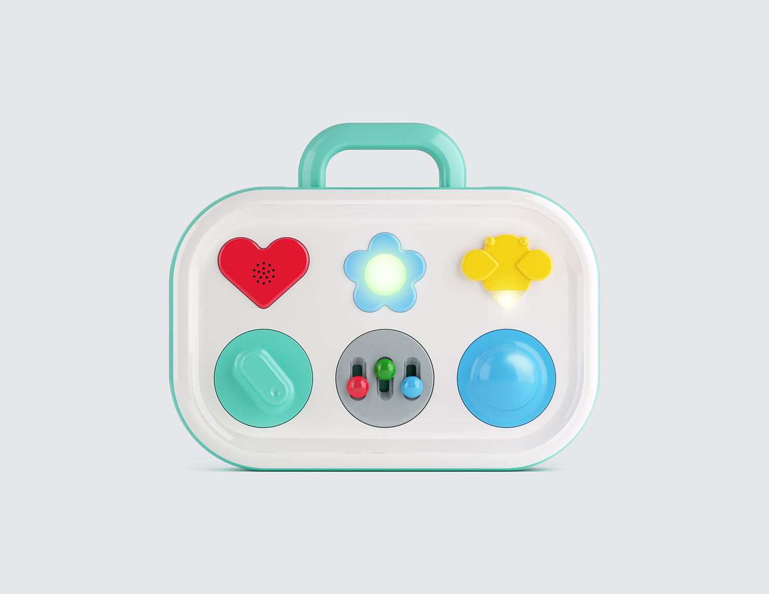 A fun and engaging Activity Board! Sound, light and vibration effects are triggered by baby's touch and modulated by their actions. Bright colors and interesting shapes hold your child's attention, and an integrated handle makes it easy to grab and go. Measures 9.4" × 1.9" × 7.6".