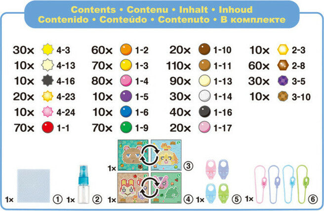 Create your favorite Villagers using the Aquabeads Animal Crossing: New Horizons Character Set! Complete set includes over 870 solid, jewel and star shaped beads in 22 vibrant colors, templates, tray, sprayer and keychains! Wear and share your designs, including Tom Nook, Isabelle, Peanut, Bunnie the Rabbit and more. Simply fasten your bead designs to the included keychains and enjoy fashionable art!