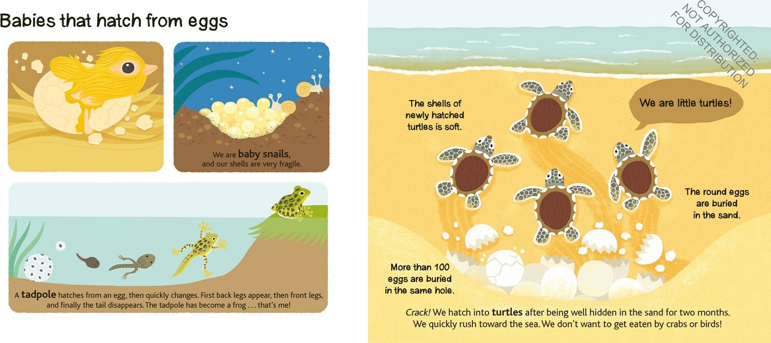 Get ready for a multisensory treat! Beginning readers can run their fingers through the fleece of a woolly lamb, touch the soft fur of a baby polar bear, and even feel the smooth shell of a baby turtle. Featuring fun textures on every colorful spread, this book will keep children busy learning through touch. What's more, they will enjoy lifting the flaps to find out all about their favorite baby animals. Which baby animals hatch from eggs? What do they eat? Little ones will learn this and much more in this fact-filled and texture-rich book, just right for little eyes and hands!