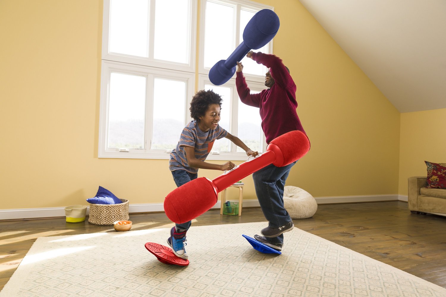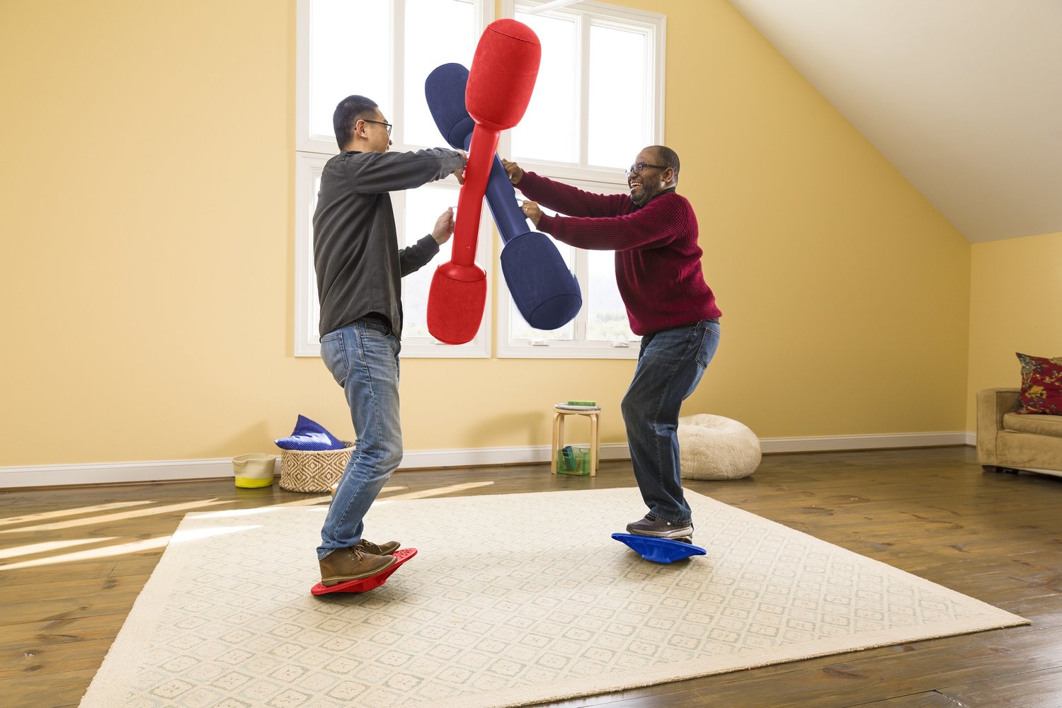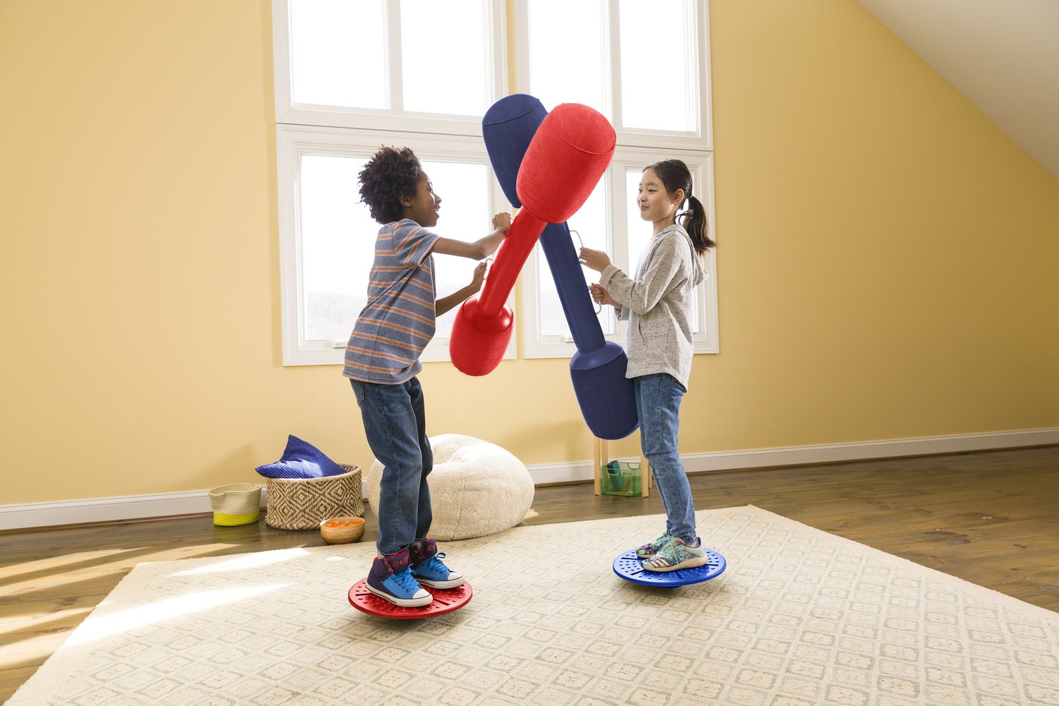 Challenge a friend to step onto the balance boards with you, hold your "boppers" ready, and go! Who will stay put and who won't? Great oversized activity for contenders up to 300 lbs.