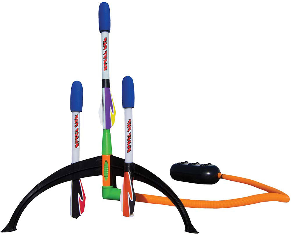 What never gets old? Stomping on the launch pad, to send foam missiles rocketing straight up, up, up! Built tough, and all components – including 3 missiles – fit neatly into the base until the next countdown.