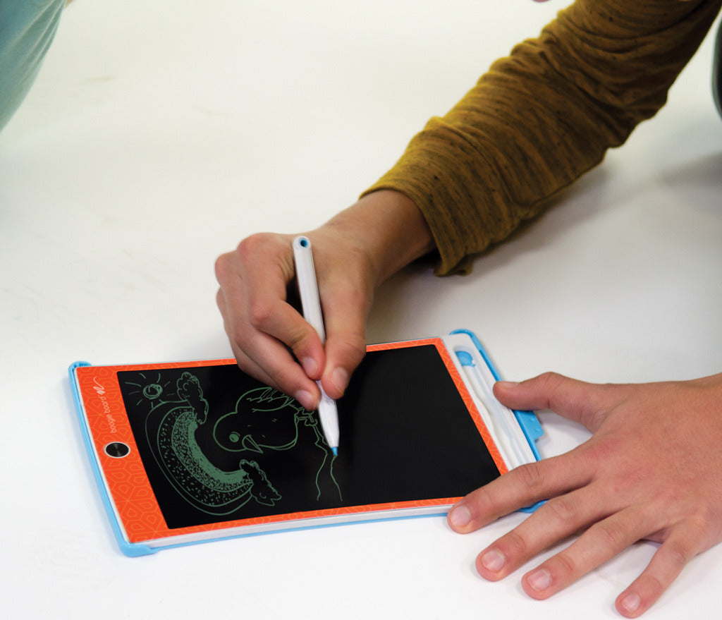 Boogie Board Jot Kids - Orange Eliminate the need for paper, scratch pads, and sticky notes - simply write and erase. The durable, ultra-lightweight paperless writing screen is engineered to feel just like writing with pen on paper. The image stays as long as you need it to and can be erased with the touch of a button. Create again and again, with nothing to charge or plug in.