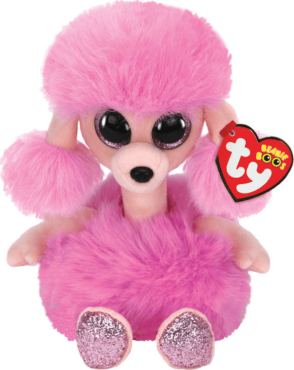 I’m a fancy Poodle with glitter on my feet. I have a puffy hairdo but I’m actually petite. My long slender neck is elegant and I hold my head up high. My ears are like pink pom-poms which no one can deny. I have a fluffy body just like what’s on my head. I’m silky soft and pink and would look perfect on your bed.