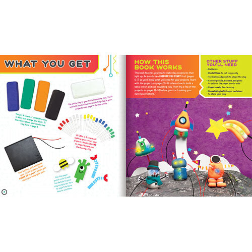 Klutz Circuit Clay: Learning electricity is easy when you make clay creations that glow! Use our special conductive and insulating clay to make a sculpture, add LEDs, attach a battery pack, and watch your clay circuit light up. With more than 15 projects to choose from, including a robot, a UFO, a dragon, and much more, Circuit Clay will surely spark your interest with a positive charge of creativity!