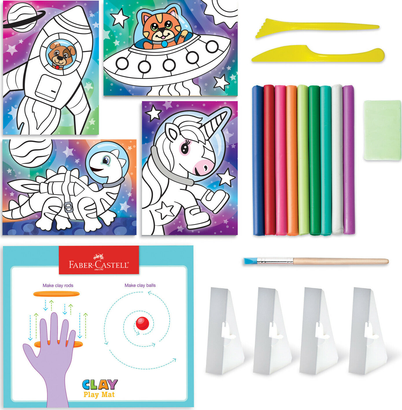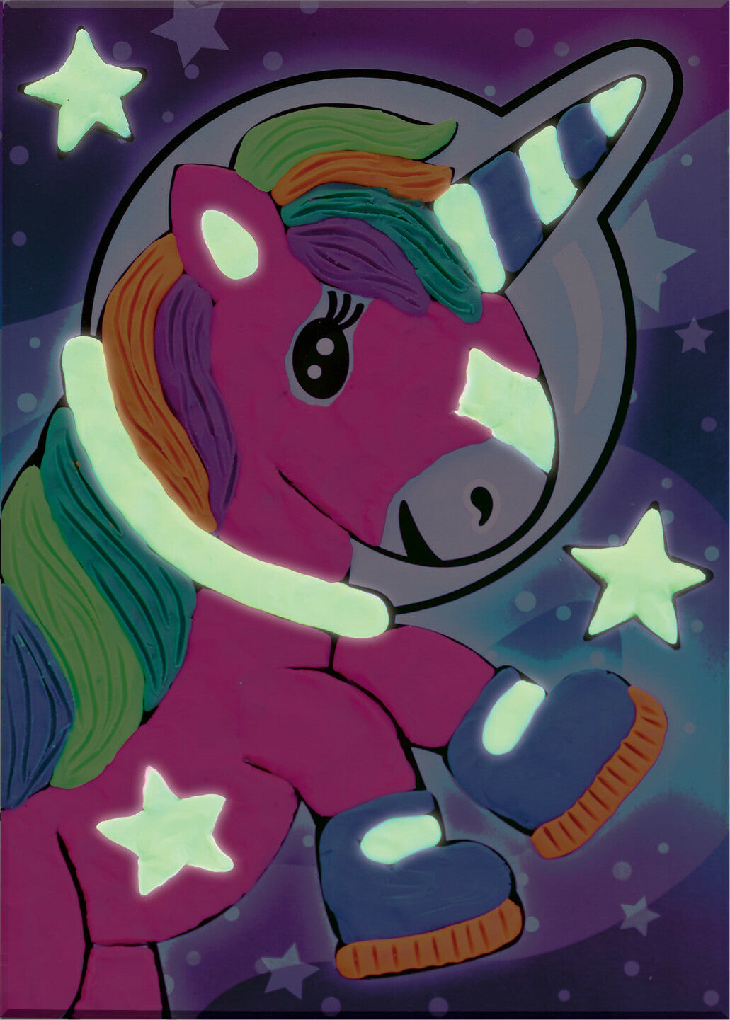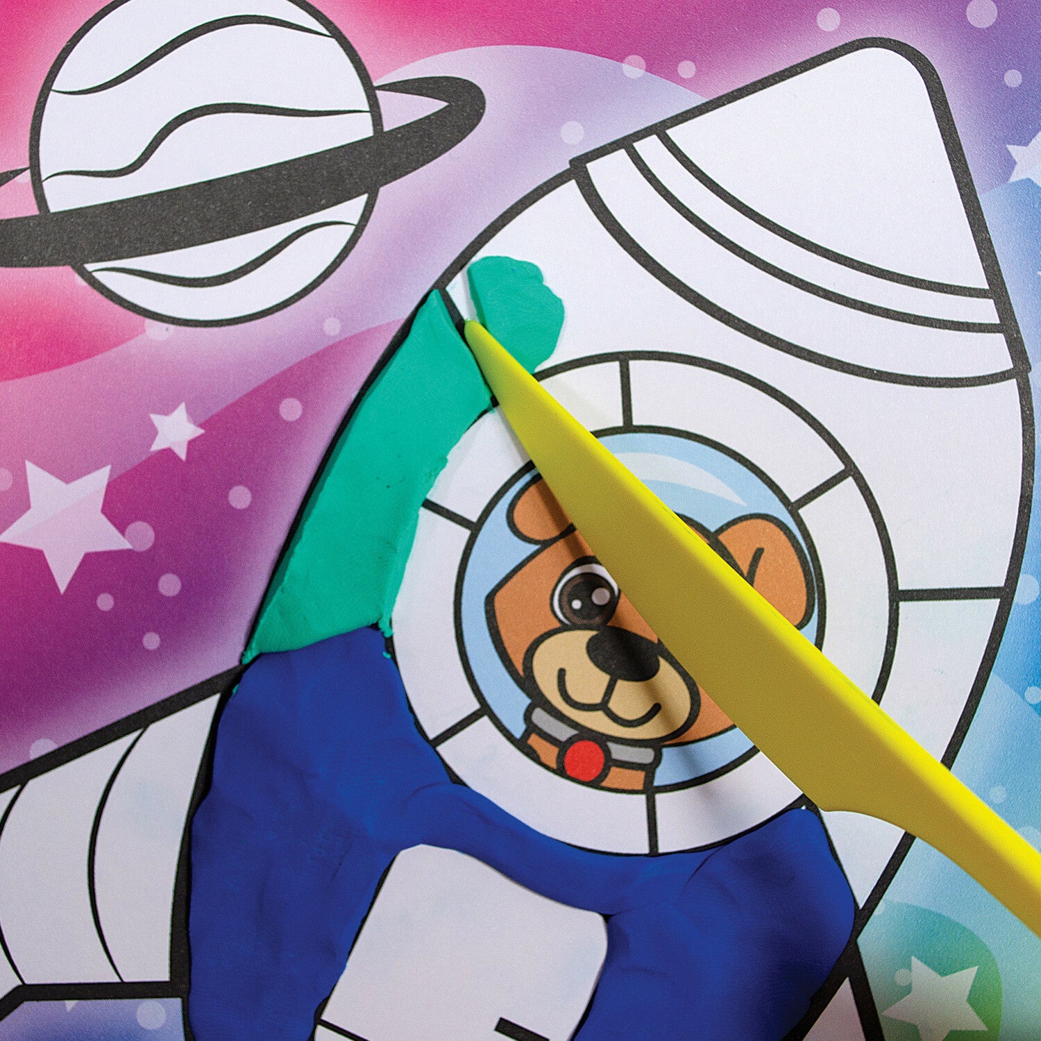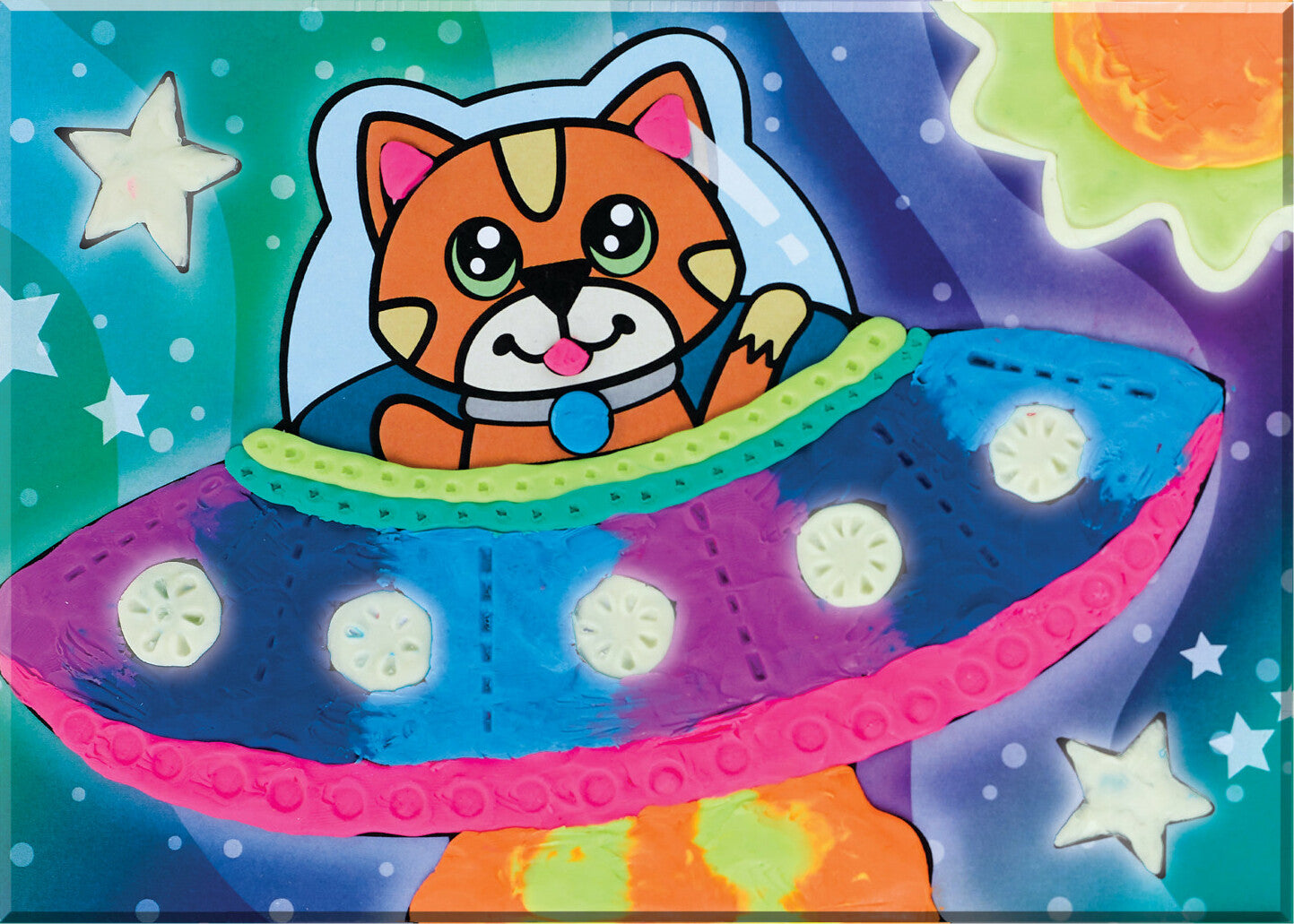 Blend, marble, shape and place your clay to create art with texture and depth. Add glow-in-the-dark clay accents to make your pictures look out of this world.