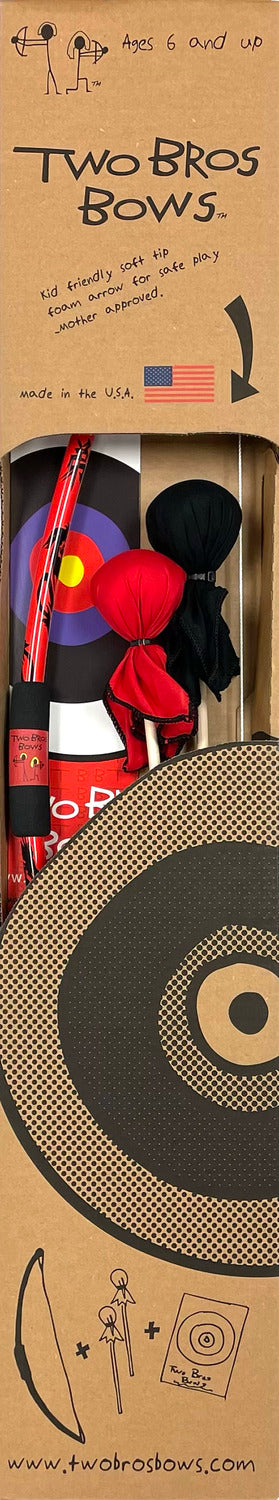 Two Bros Bows Dragon Bow and Arrow Packaged Box Set. Made in the USA & 3rd party tested. Two Bros Bows were created by kid inventors Duncan and Hayden when they were 10 & 7. Encourages active play, outdoor play, dexterity, hand-eye coordination.