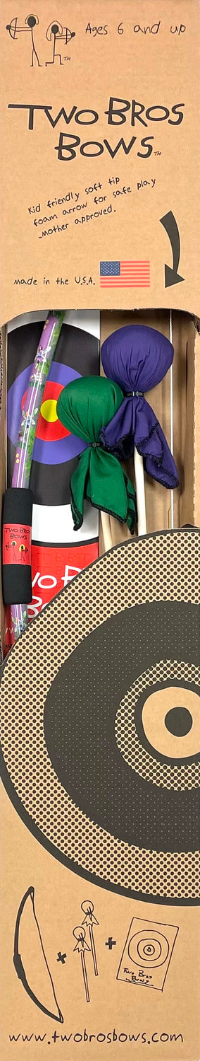 Two Bros Bows Fairy Bow and Arrow Packaged Box Set. Made in the USA & 3rd party tested. Two Bros Bows were created by kid inventors Duncan and Hayden when they were 10 & 7. Encourages active play, outdoor play, dexterity, hand-eye coordination.