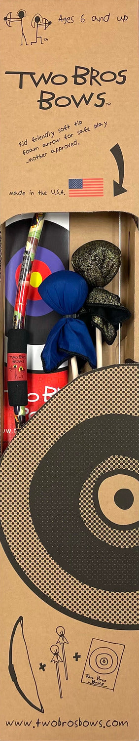 LOCAL PICK-UP ONLYTwo Bros Bows Knight Bow and Arrow Packaged Box Set. Made in the USA & 3rd party tested. Two Bros Bows were created by kid inventors Duncan and Hayden when they were 10 & 7. Encourages active play, outdoor play, dexterity, hand-eye coordination.