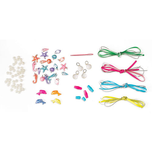 - Make necklaces and bracelets with colorful sea-themed beads like dolphins, starfish, sea horses, shells and pearl beads