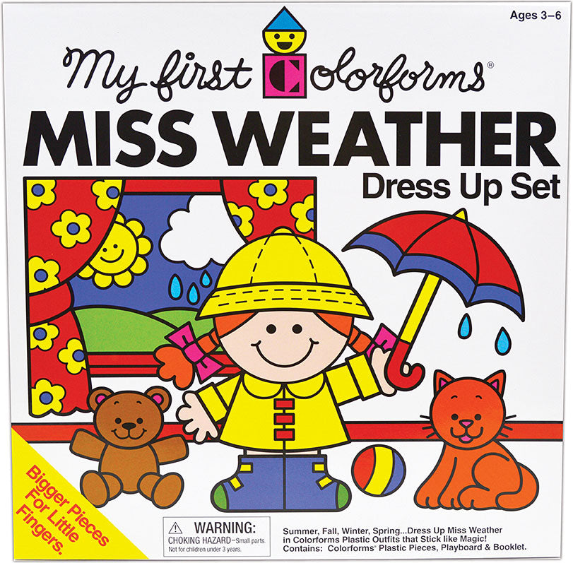 Summer, Fall, Winter, Spring� Dress up Miss Weather in fun and colorful outfits for all seasons! Bigger pieces for little fingers make this set the perfect way to introduce your little one to the world of Colorforms.