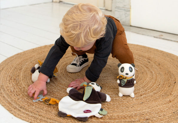 This Pancha the Panda Lovey combines a natural rubber organic head with a soft bamboo fabric comforter. Puppet-play helps children to develop important socialization, listening, and speech skill. Its soft rubber head is ideal for teething toddlers. The Pancha the Panda Lovey is soothing to babies and young children.
