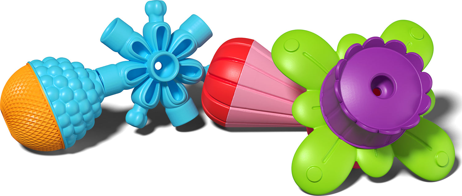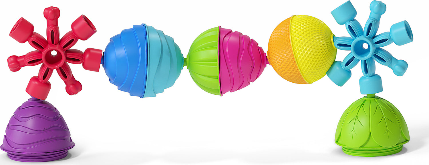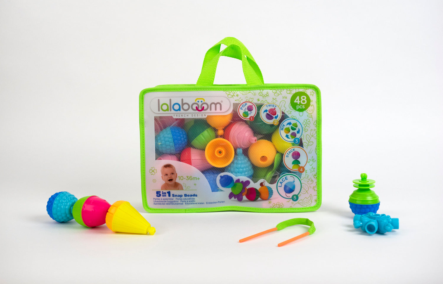 A zippered tote bag with 48 educational beads in a variety of colors and shapes to develop fine motor skills in young children. Designed according to the principles of the  Montessori method. Children generally achieve developmental progress using the beads in these 5 steps: the child will first pop the pearls together and then twist and turn them, mix them, stack them to make numerous designs and finally lace the beads together. The lacing piece will help your child develop his grip for learning to write. Content: 48 pieces Pack: Bag with zipper and hanse Dimensions: 30x21x8cm Age: 10 - 36 months. Beads are dishwasher safe.