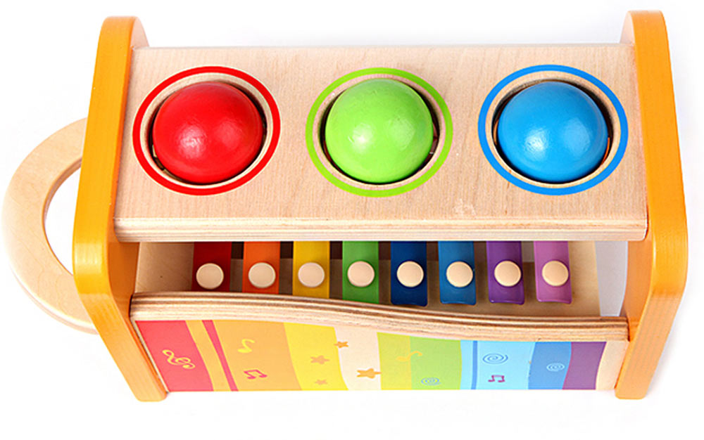 Is it a busy bench or a xylophone? The answer is yes! When baby pounds the balls through, they drop onto the keys below, tinkling out melodic sounds. Tired of hammering? Remove the keyboard and let the concert begin. A 3-in-1 award winner, this reimagined classic encourages logic and dexterity, while demonstrating cause and effect.