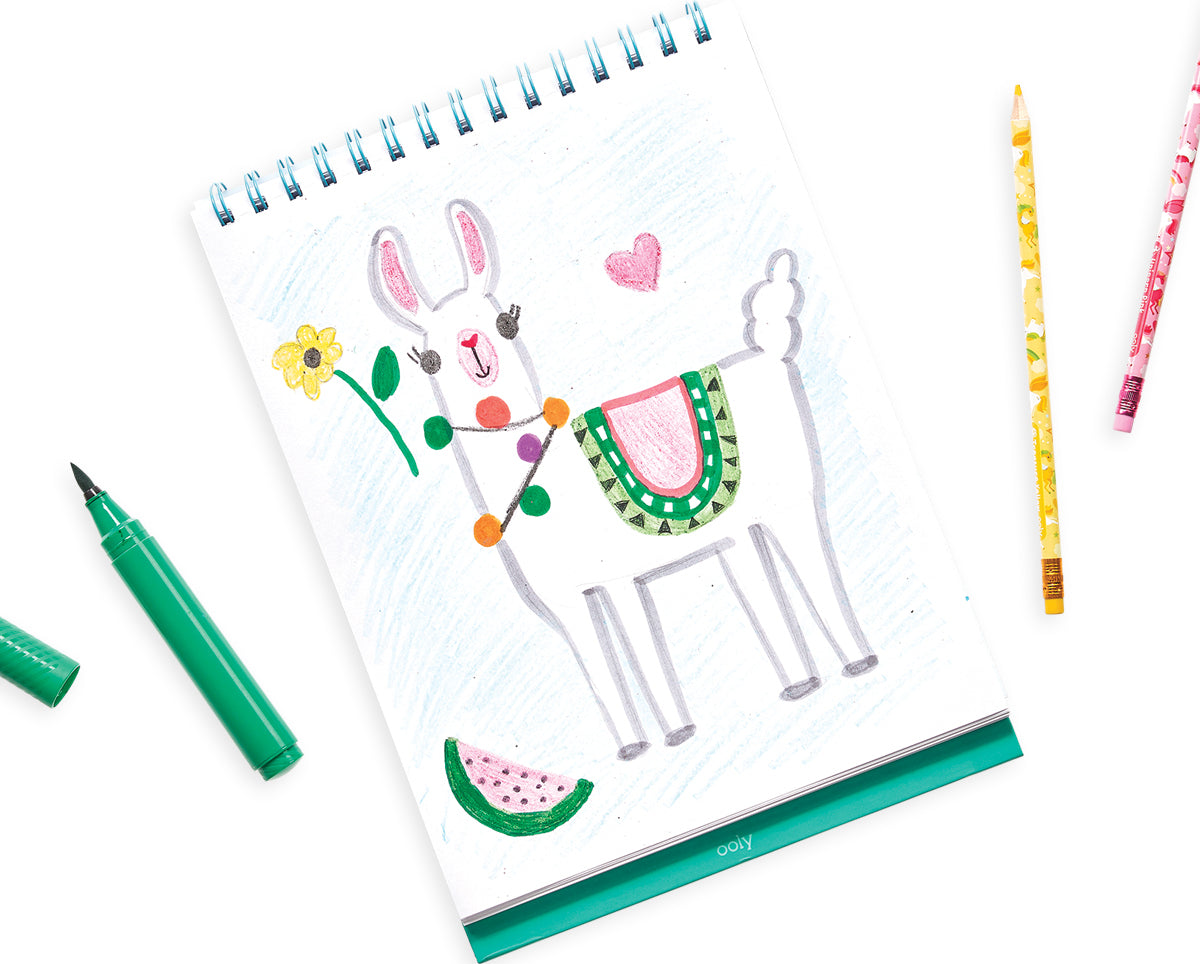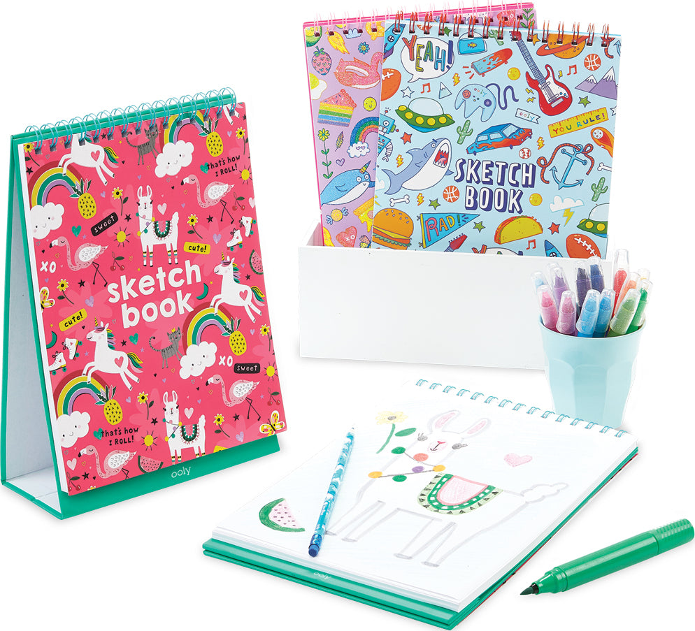 Show off your art to the world with a Sketch and Show standing sketchbook. Funtastic Friends sketchbook comes with a built-in stand so after you’re done making your art you can share it with everyone. This kids sketchbook features 45 perforated pages of 120 gsm acid-free white paper sized at 8x10 inches. A colorful cover has fuzzy accents featuring unicorns, rainbows & llamas that make this sketchbook extra special! These standing sketchbooks for kids make for an inspired gift of imagination when paired with crayons, markers or colored pencils.
