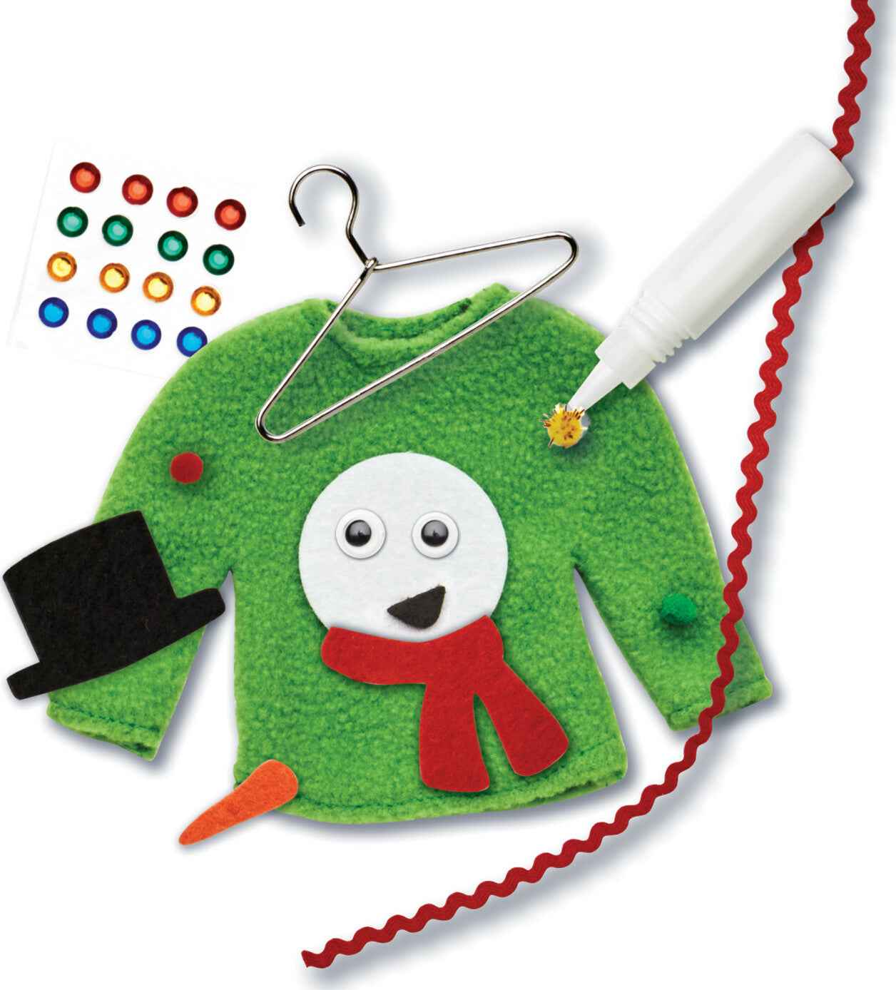 These ornament-sized sweaters come ready to decorate with festive felt, rhinestones, bells, trims and more.