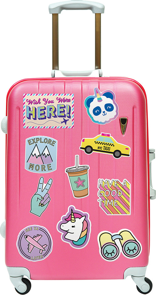 Personalize your travel luggage and accessories with the 10 pages of vinyl waterproof stickers in this book. These stickers can be used on anything you want to make your own...luggage, briefcases, handbags, backpacks, duffle bags and more. Every one of these oversized stickers were designed by the creative team at Fashion Angels and contain original illustrations and cleaver sayings. These are great for identifying your luggage in a sea of look-alike bags. This 5" x 8" book contains enough stickers to tear and share with friends and family.