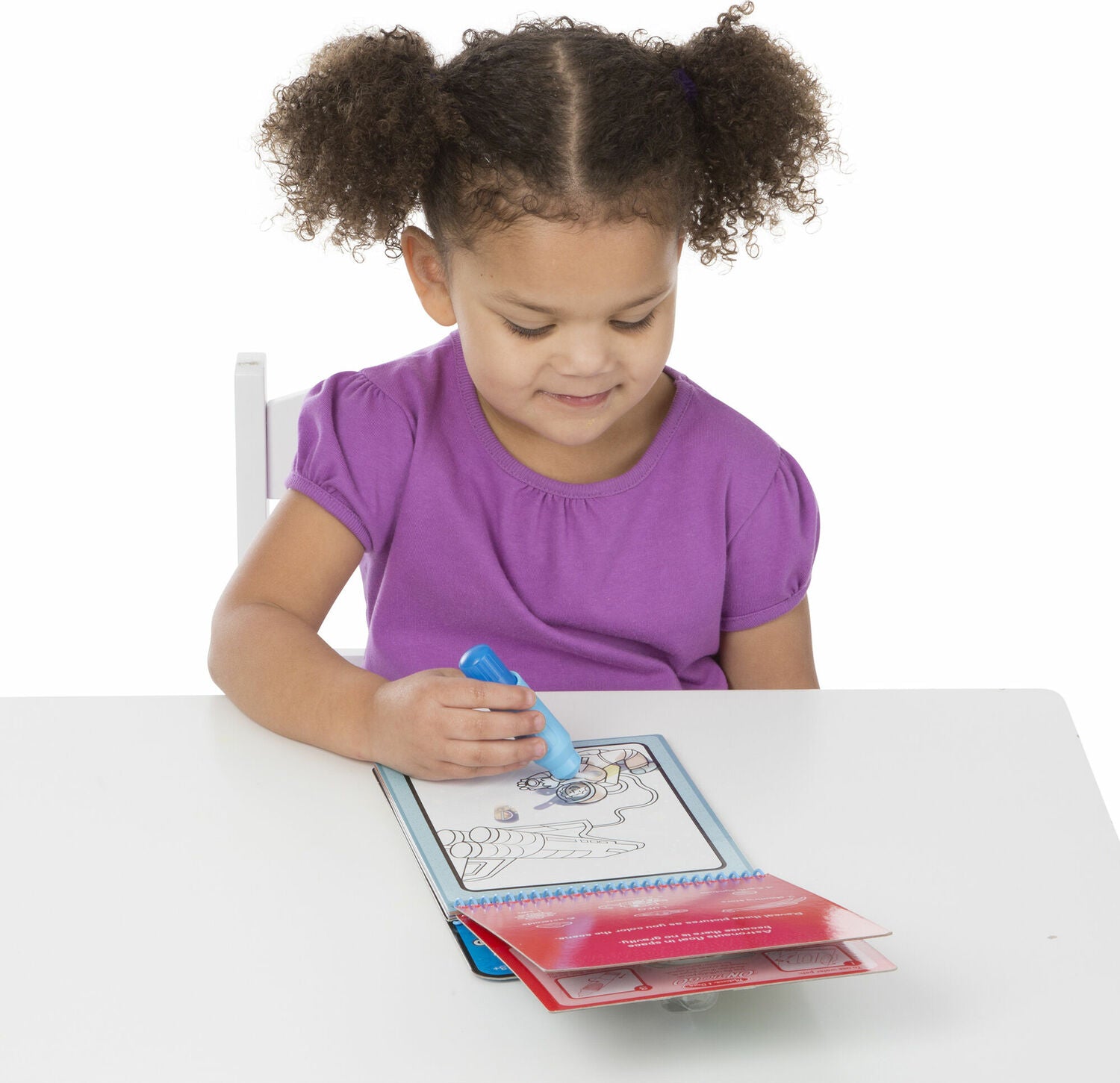 No-mess painting for kids! This exciting paint-with-water coloring book includes four reusable pages and a refillable water pen. Simply use the pen to color in each scene - details and vibrant color appear with every stroke! Then let the page dry to erase the pictures and color it in again and again. This adventure-themed book includes four scenes to color (underwater, pirates, space, and medieval knights), and a search-and-find activity for each scene. The chunky-sized water pen is easy for kids to hold and stores neatly right in the front cover, making this Water WOW! an ideal travel activity book and travel toy for kids!