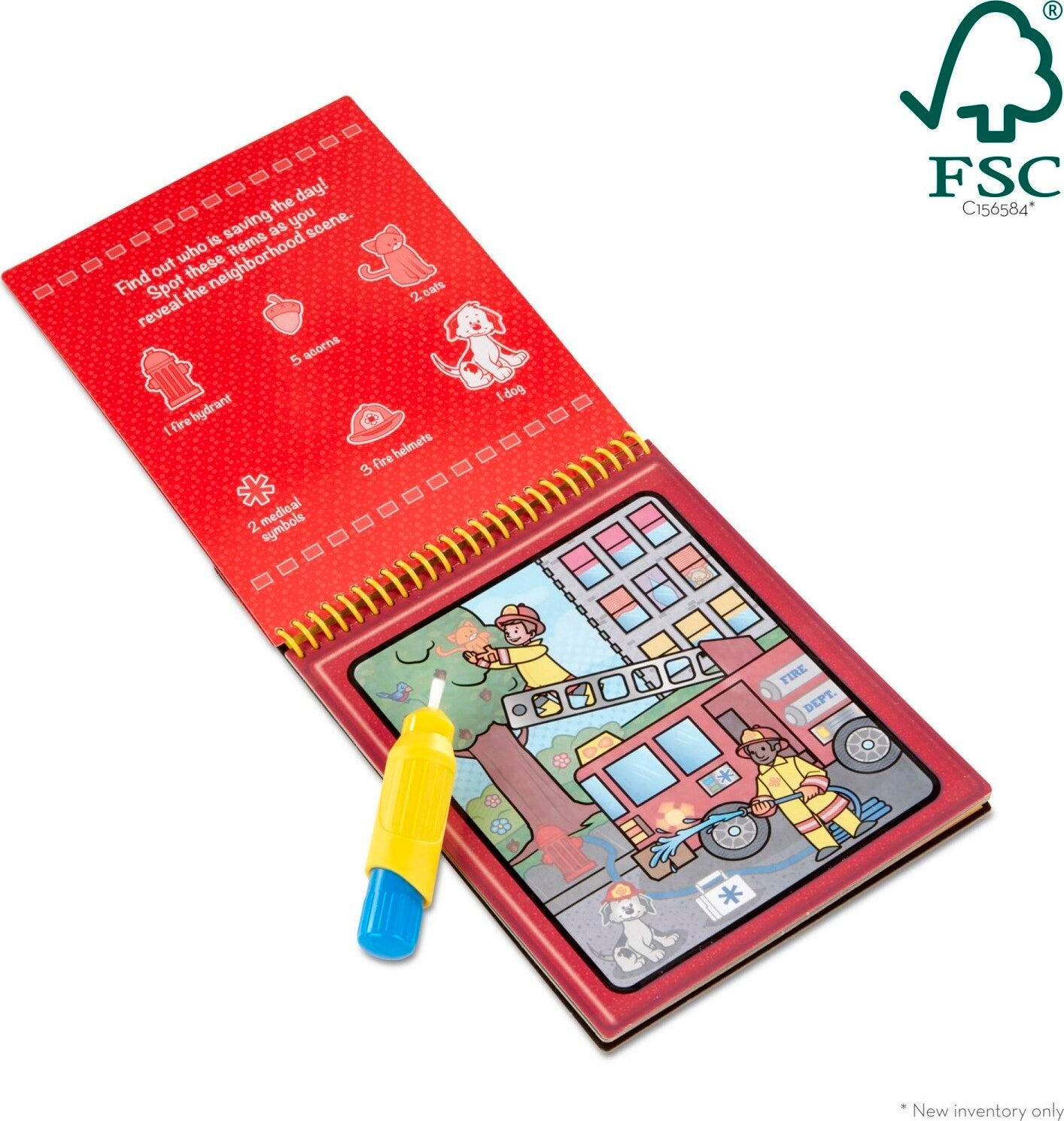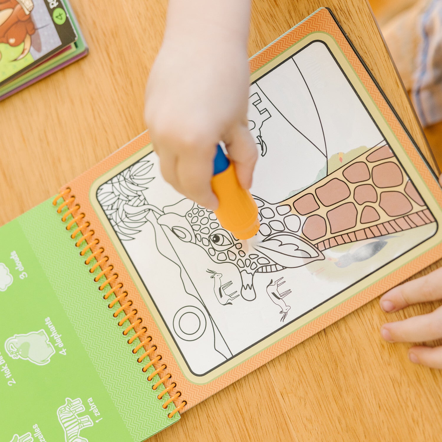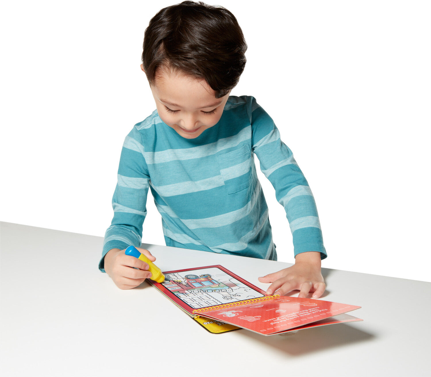 No-mess painting for kids! This exciting paint-with-water coloring book includes four reusable pages and a refillable water pen. Simply use the pen to color in each scene-details and vibrant color appear with every stroke! Then let the page dry to erase the pictures and fill it in again and again. This vehicle-themed book includes four scenes to color, and a search-and-find activity for each scene. The chunky-sized water pen is easy for kids to hold and stores neatly right in the front cover, so Water WOW books make ideal travel activity books and travel toys for kids!