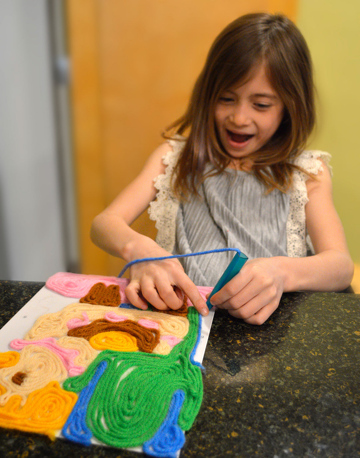 A whole new way to create AMAZING textile art with the ease of coloring! Thread the Y'Art pen and color in the numbered areas - yarn magically clings to the Grip-N-Stick Y'Artboard as you swirl, twirl, and zig-zag to complete each unique design! Y'Art is totally mess-free and OOPS-proof - if you make a mistake, simply lift up the yarn and reposition. Each canvas is pre-printed and numbered for you to create vibrant textile art to frame and display!